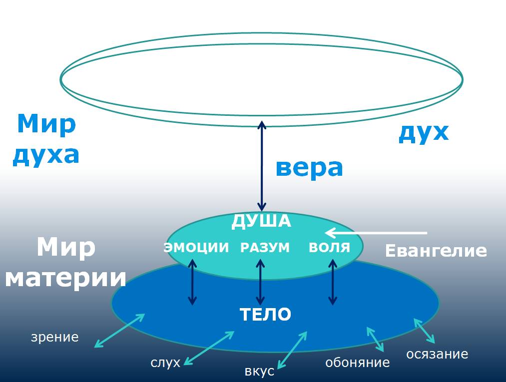 Вера говорит, что Бог живет в моем духе и даже если я согрешил или если мне очень плохо, в моем духе все неизменно, потому что Господь сказал: «не оставлю тебя и не покину тебя» (Евр.13:5б). Значит, так оно и есть, поэтому я каюсь, принимаю прощение и иду дальше путем спасения. Если я в смятении, то вспоминаю, что в моем духе есть совершенный мир. Мне надо постараться войти в дух. Там в веянии «тихого ветра» всегда можно получить как успокоение, так и направление для правильной реакции на происходящее.