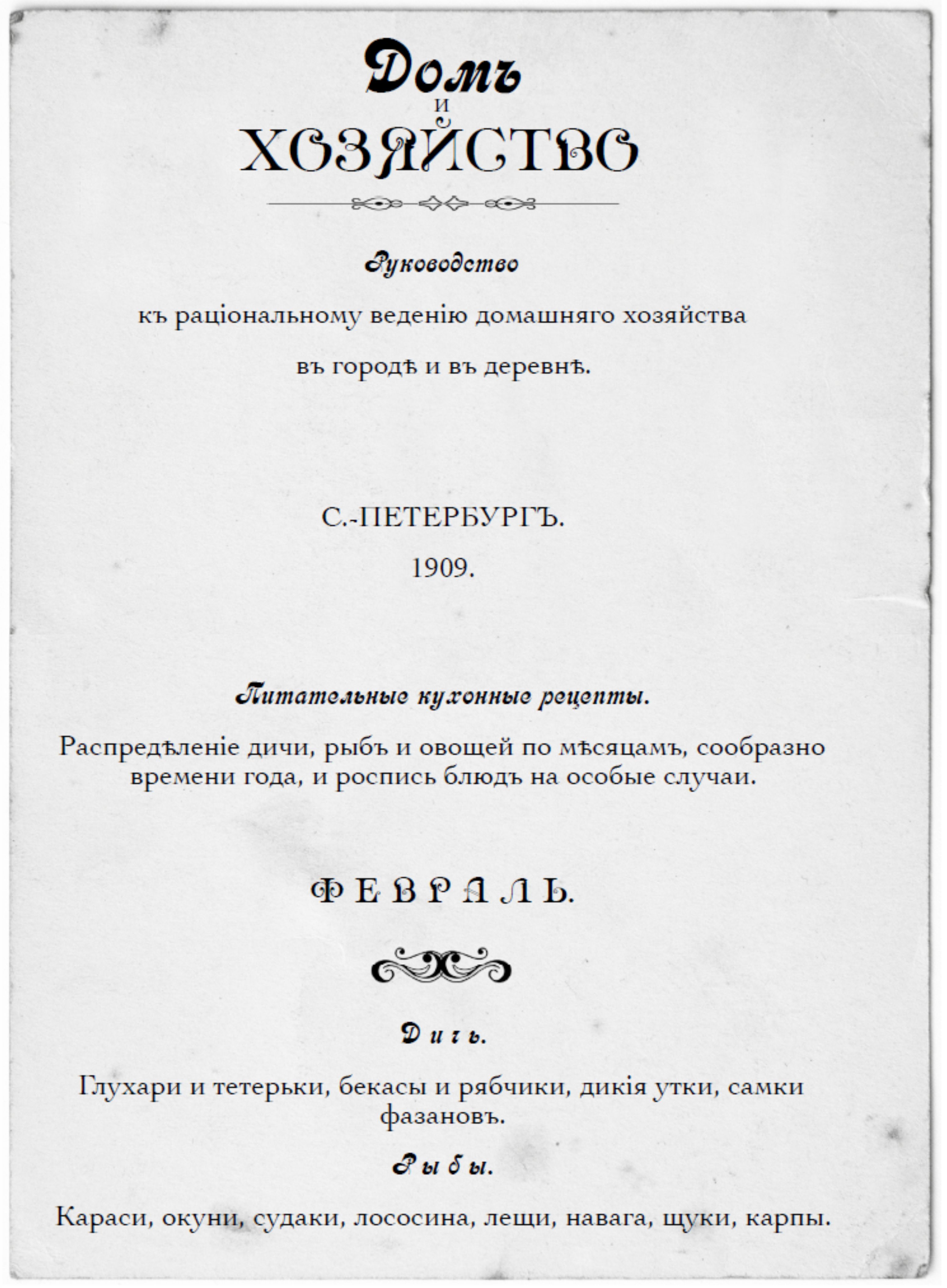 Мама родилась перед самой революцией и в жизни не видела ни тетерева, ни самки фазана. Весь тот прекрасный мир кулинарных книг, населенный господами, прислугой и самками фазана, прекратил свое существование в 1917 году. Рыба исчезла из рациона тогда же и снова появилась на прилавках через много лет после маминой смерти.