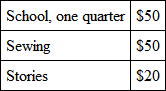 Also began another tale, but found little time to work on it, with school, sewing, and house-work. My winter's earnings are,–