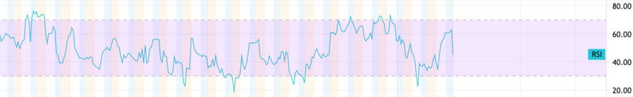 Для того чтобы понять, в какой стадии находится рынок, есть технический индикатор, который называется «индекс относительной силы», или RSI. Глядя на него, можно понять, в какой стадии перекупленности или перепроданности находится та или акция, и можно определить, когда будет разворот цены.