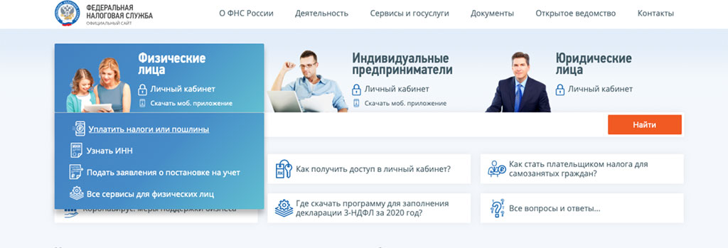 Теперь мы переходим на сайт NALOG.RU. Заходим в «ФИЗИЧЕСКИЕ ЛИЦА».