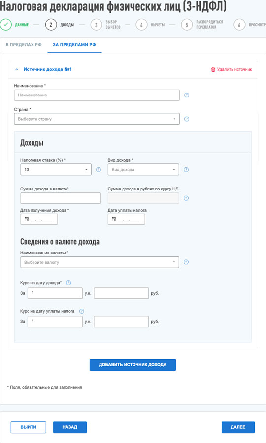 Нажимаем «ДОБАВИТЬ ИСТОЧНИК ДОХОДА», и у вас откроется вот такая простыня.