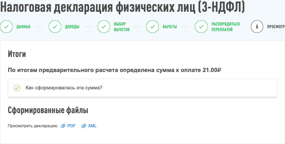 Система автоматически посчитала, что мы должны заплатить налог в размере 21 рубль. Чтобы понять, как сформировалась эта сумма, можно нажать на поле «Как сформировалась эта сумма».