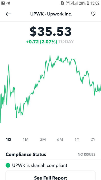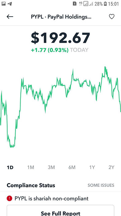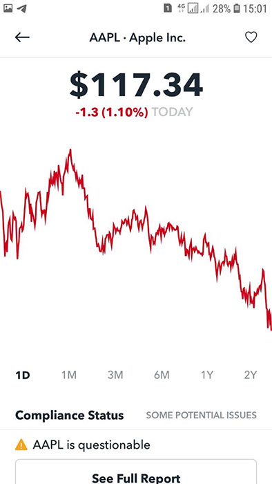 Я нашел удобные приложения, где можно определить, одобряет шариат покупку акций компании или нет: