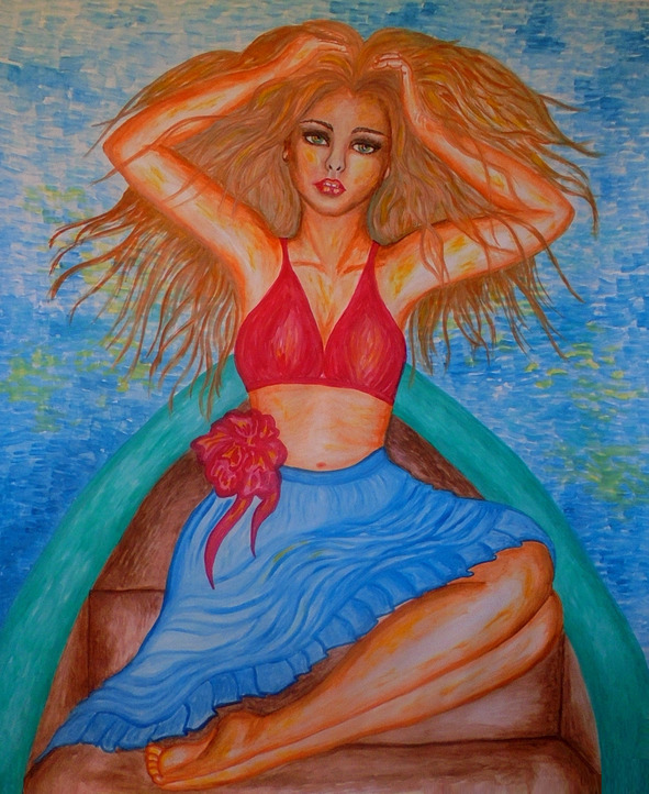 Девушка быстро собрала вещи в сумку и надела купальник. На тропинке, которая вела к реке, ее уже ждали: Сергей, несколько ребят и подруг. Они поздоровались и отправились к реке. Настроение у них было замечательное, а погода еще лучше.
