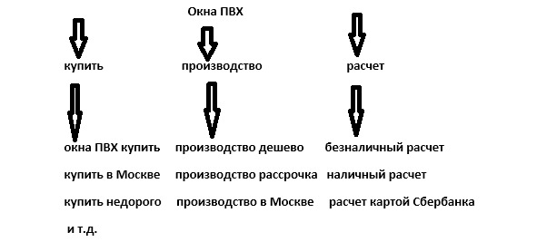 Мы уже с вами знаем, что такое ВЧЗ. Это ключевой запрос, который состоит из одного или двух слов и имеет ознакомительный характер. Как же можно подбирать быстро поисковые запросы при помощи ВЧЗ? Смотрим схему ниже: