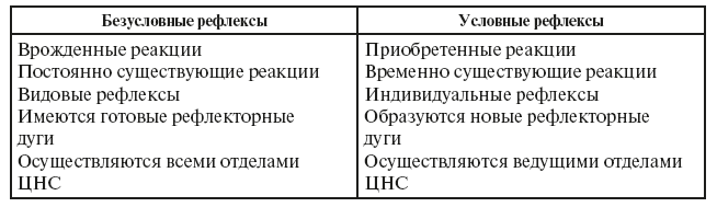 Условные рефлексы по многим признакам отличаются от безусловных (табл. 1).