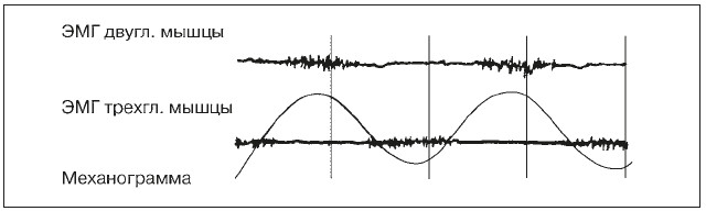 Рис. 13. Электромиограмма мышц-антагонистов при циклической работе