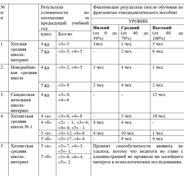 2. Независимая переменная исследования самообучаемости школьников – этнодидактическое пособие самообучения математике.