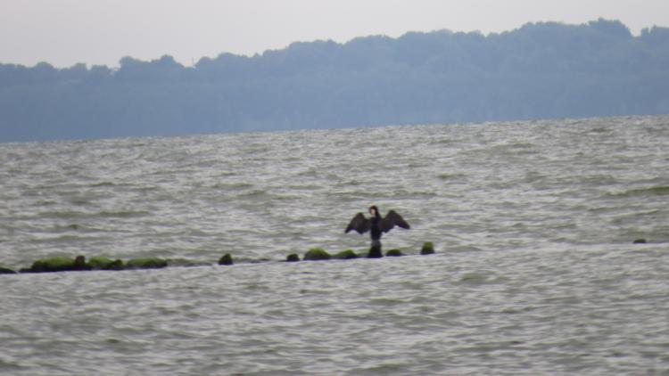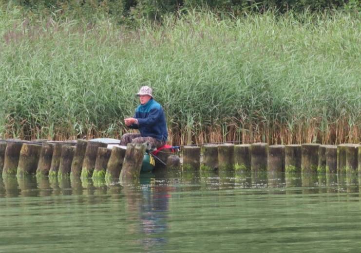 Подошли по латеральным знакам к главному фарватеру, запросили разрешения, получили, пошли к Взморью. Пока ходили по заливу и шли по каналу, кэп обратил наше внимание на небольшое количество (почти полное отсутствие) ориентиров и их малозаметность. Это для будущего, для отработки наших умений брать пеленги и определять местоположение судна. Но это потом, а пока нас ждала (хотя нет – мы ждали, а Взморью было пофигу) швартовка во Взморье. Берега искусственных островов, которые ограждали канал от заиливания со стороны залива, были достаточно густо населены рыбаками и бакланами. Бакланы вроде бы водоплавающие, но спят на деревьях и после очередного нырка садятся на берег или навигационные знаки и сушат крылья в позе «монтана».