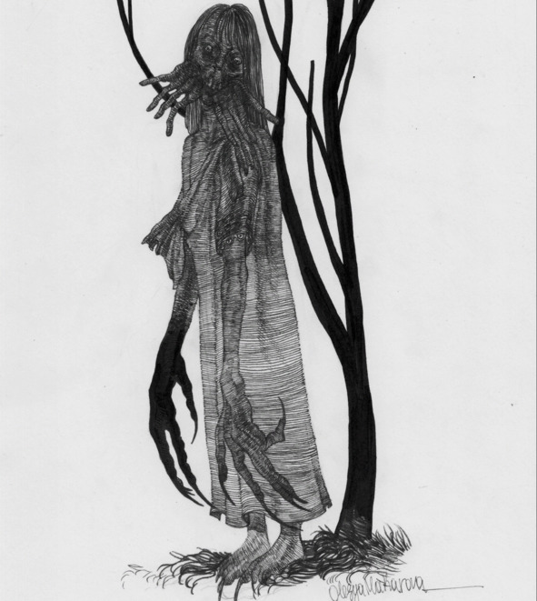 Внезапно живот девочки под серой от плесени и гнили ткани ночнушки заходил буграми, и, судя по всему, прямо из чрева из-под подола вывалилась омерзительная, чёрная, склизкая личинка в локоть величиной. Погань начала извиваться, и сквозь толстую шкуру из боков прорвались страшненькие чёрные лапки наподобие паучьих. Мерзкая тварь тут же убежала куда-то в темноту, откуда уже довольно давно раздавались шорохи и скрежещущие поскрипывания большого количества маленьких существ. Твари прятались в темноте и следили за каждым жестом девушки. Та же, словно не замечая этого ужаса, плакала над «девочкой». Мне становилось с каждой минутой всё более жутко от этого места и этой ситуации. Я понимал, что меня здесь как бы нет, и для них я даже не существую, но это не отменяло того факта, что волосы на моей голове вот уже длительное время шевелились от окружающего меня кошмара.