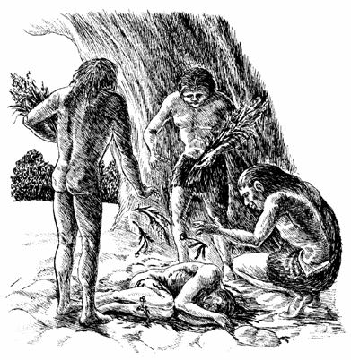 В пещере Шанидар обнаружены 9 скелетов тяжелобольных людей, живших 70 – 40 тысяч лет назад. Все они похоронены на ложе из веток деревьев и лекарственных цветов. Веточки тысячелистника, золототысячника, крестовника, алтея, растений семейств лилейных и мальвовых были связаны в букетики и разложены вокруг тела. Перечисленные растения произрастают в современном Ираке, причем многие виды обнаружены на значительном расстоянии от пещеры Шанидар. Вероятно, «цветочные люди», как назвали их археологи, специально отправлялись в далекий путь, чтобы собирать целебные травы. Появление цивилизованных захоронений говорит о формировании абстрактного мышления. Первые представления о загробной жизни, развитие культа умерших, появление обрядов свидетельствуют об окончательном выходе человека из животного состояния и о наличии у него сознания почти за 20 тысяч лет до выделения Homo sapiens – человека современного вида.