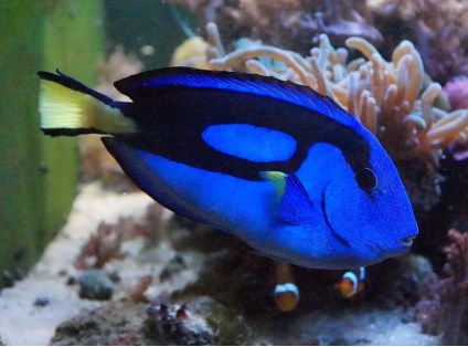 Собственно, полное имя сего персонажа таково: Паракантус Хепатус. Или же – голубой хирург. Хотя на самом деле никакой не голубой, а сочного синего цвета. И не хирург вовсе, а … хирург женского пола – в общем, дама! И выяснилось это только на восьмом году ее, Мамзелькиной, жизни в нашем аквариуме. Жизни, в которой было столько всякого …!