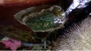 до того я была уверена, что морские ушки – это только стомателлки, что размножаются чуднО – стоя на хвосте, вертикально, "дымя" икрой как маленькие паровозные трубы. При опасности часть хвоста отбрасывают, как ящерицы (см. Д.Кнопп, да я и сама видела!), но потом, не в пример ящеркам, заново не отращивают. Как же они размножаются после такой потери… ?