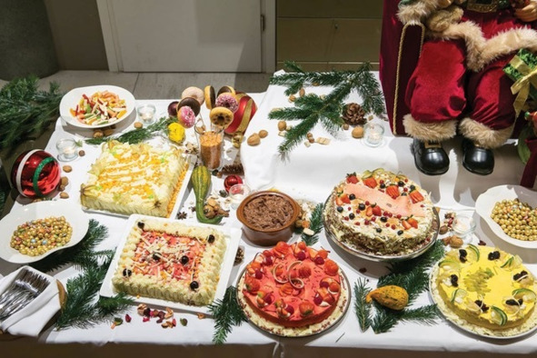 Вначале ужина гостям предлагается обширный ассортимент закусок, соусов и различных видов хлеба. Каждый подходит и кладёт себе в тарелку все, что ему приглянется. Гости, сидя за своими столиками, не спеша поглощают вкуснейшие блюда, запивают их различными видами напитков, наслаждаются приятной рождественской музыкой и общаются между собой.