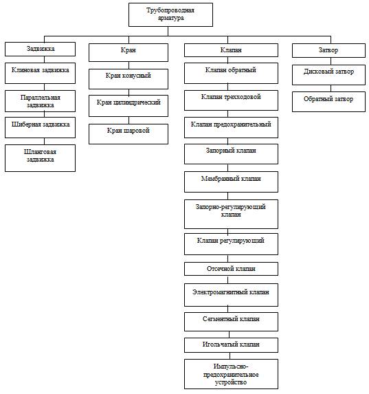 Классификация трубопроводной арматуры осуществляется по различным признакам. Пример приведен на рис.1.1 [1].