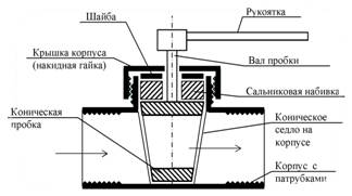 Рис.1.12. Конструкция крана с конусной пробкой (сальниковый)