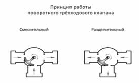 Они бывают: смесительные и разделительные. У смесительного один выход и два входа. То есть он выполняет функцию смешивания двух потоков, что необходимо для понижения температуры теплоносителя. (рис.1.15).