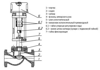 Для автоматического управления процессами, протекающими в системах тепло-, водоснабжения и системах кондиционирования воздуха, в качестве исполнительных устройств применяются запорно-регулирующие клапаны с электроприводами [6]. Пример запорно-регулирующего клапана показан на рис.1.16.