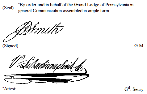 Correspondence with Grand Lodge of Pennsylvania, January 3, 1792