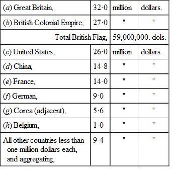 (b) That a like state of affairs exists with regard not only to the number of foreign mercantile firms, located in Japan, but also in the proportion borne by the British flag of the external trade.
