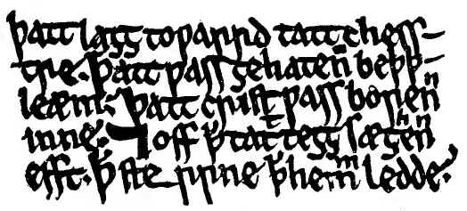 The religious poetry of the time is not behind the great prose of The Ancren Riwle, and one of them, the Luve Ron (Love Song) of Thomas de Hales, is very akin to the spirit of that work, and has been well described as "a contemplative lyric of the simplest, noblest mold." Garnett says: "The reflections are such as are common to all who have in all ages pleaded for the higher life under whatsoever form, and deplored the frailty and transitoriness of man's earthly estate. Two stanzas on the latter theme as expressed in a modernized version might almost pass for Villon's:—
