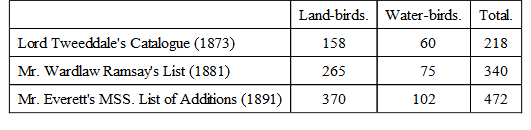 The following tabular statement will illustrate the rapid growth of our knowledge of the birds of the Philippines:—
