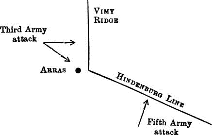 As the result of our successes in the Ancre valley, the German position between the Ancre and Arras formed a pronounced salient. It was determined to attack simultaneously at Arras and from the Ancre valley, with the object of breaking through at both points and cutting off the German inside the salient.