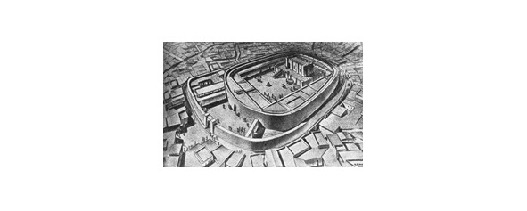 “Round Temple” and residential areas of the Sumerian city. The settlement of Hafaj. The first half of the 3rd millennium BC in. Reconstruction