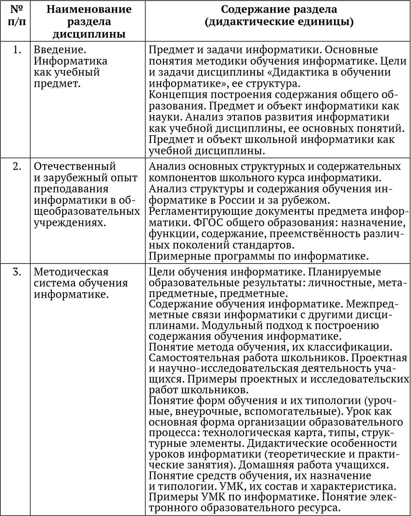 Содержание учебной дисциплины «Дидактика в обучении информатике» 1