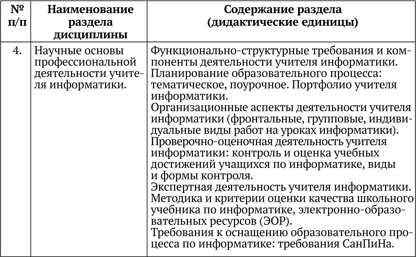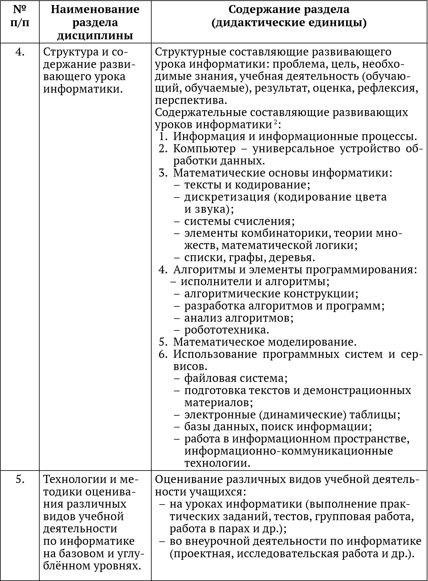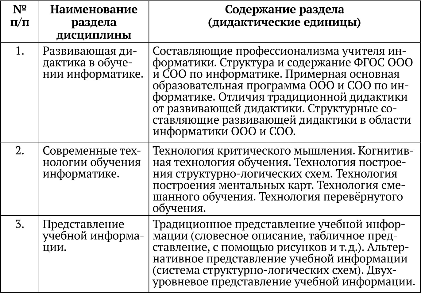 Содержание учебной дисциплины «Методика углублённого обучения информатике»
