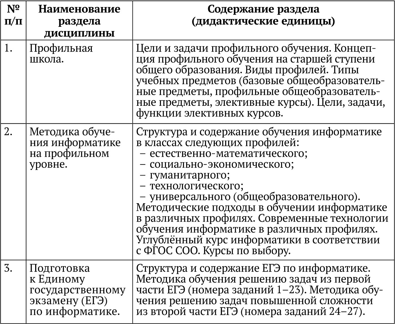 Содержание учебной дисциплины «Методика профильного обучения информатике»