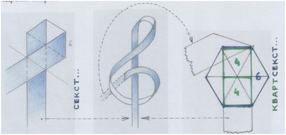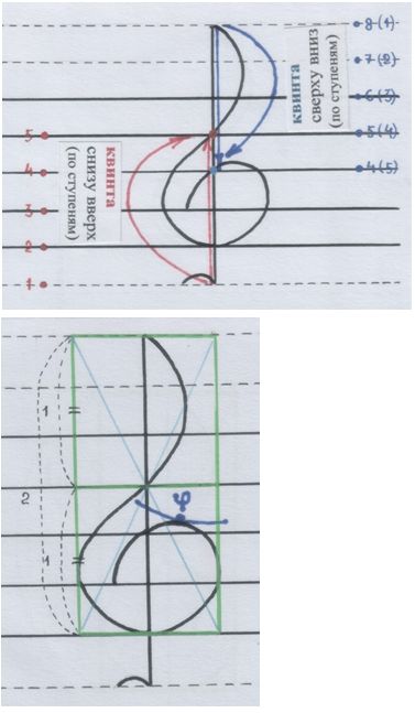 Выходит, геометрия скрипичного ключа содержит в себе намёк и на обращения трезвучия: секстаккорд и квартсекстаккорд. Удивительны свойства этого ключа!