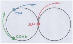 Мы это делали, когда вникали в истинную вращательную симметрию пространства. Только у нас теперь будет круг с тремя точками-нотами: ДО-МИ-СОЛЬ, трезвучие.