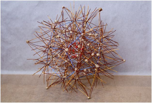 Внутри – красный додекаэдр, он вырастает в белый икосаэдр, а тот опять вырастает в додекаэдр, показанный синим цветом.