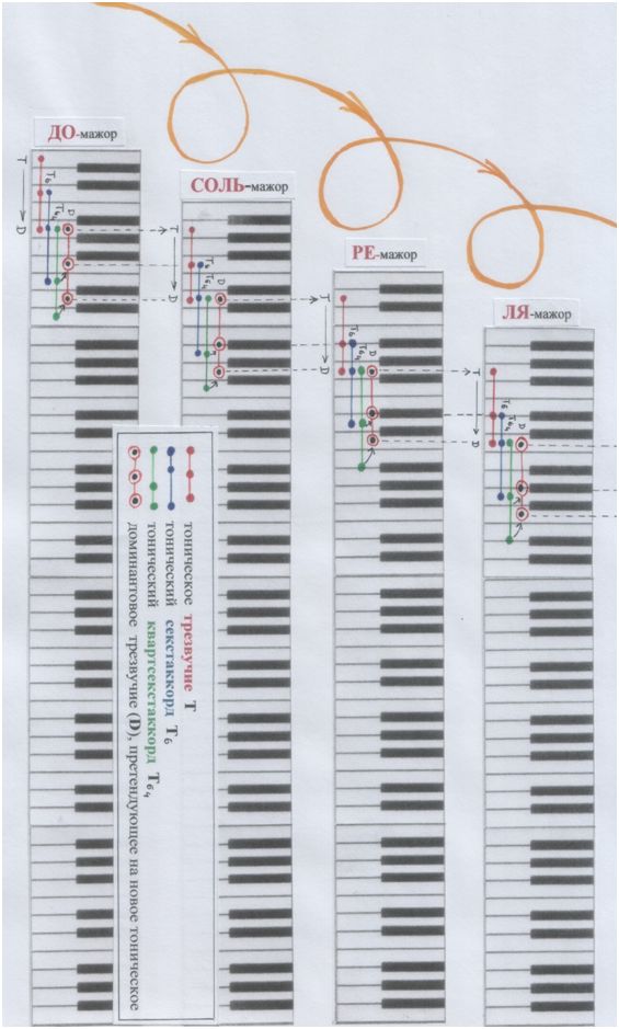 Тонические трезвучия тональностей на самом деле не прыгают по квинтам, когда ТОНАЛЬНОСТИ-актрисе захочется смодулировать – измениться. Они «подкатываются» к доминанте-квинте, чтобы утвердить на ней новую тонику.