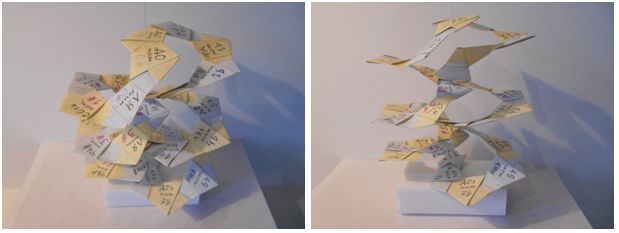 Оказавшись на свободе в пространстве, эта фигура продемонстрирует свойства ленты Мёбиуса: закольцованная бесконечность, в которой два сливаются в одно – две поверхности становятся одной, и, двигаясь в одном направлении, подобно звуку и Времени, мы охватываем две противоположности – низ и верх (глубину и высоту, «что было» и «что будет»).