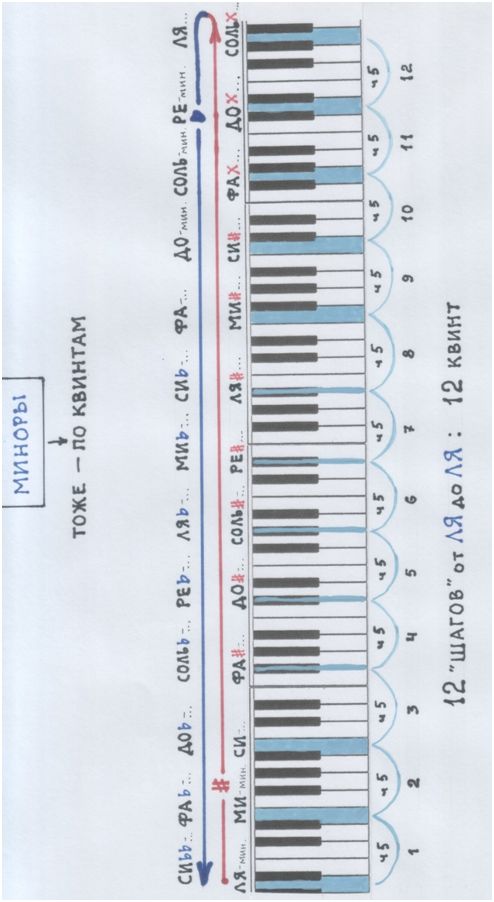 …А тоже гуляют по той же лестнице-кольцу-бесконечности. Вместе с тональностями. И тоже… правильно, по квинтам! (Смотри картинки на следующих страницах.)