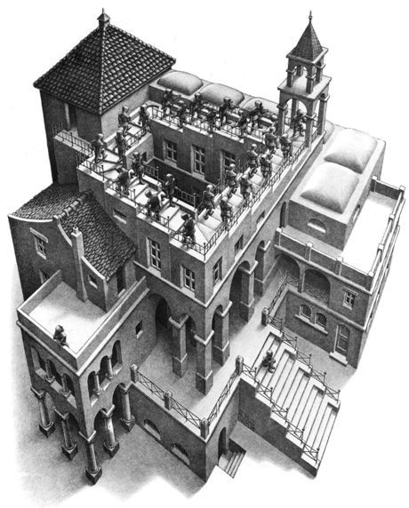 Они вместе поднимаются с диезами и спускаются с бемолями по одной и той же лестнице. Как стражники в гравюре Маурица Эшера «Поднимаясь и спускаясь» – да, по лестнице-кольцу.