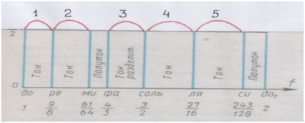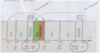 Заметим попутно: тон между ФА и СОЛЬ назван р а з д е л и т е л ь н ы м.