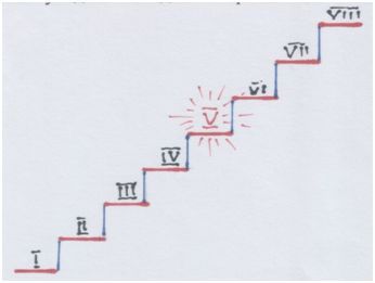 Вот и наша лестница квинт пронумерована числами-ступенями.