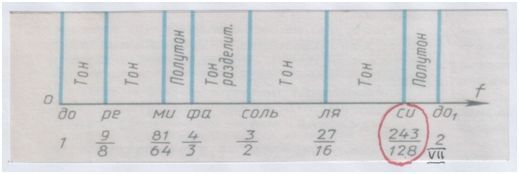 VII-ю ступень, СИ, мы получим, умножив частоту ЛЯ опять же на тон 9/8:
