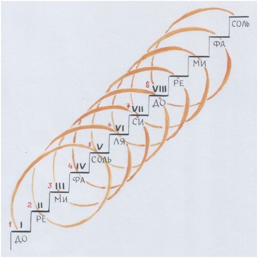Восемь витков октавной спирали. На каждую ступень – по витку.