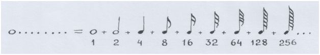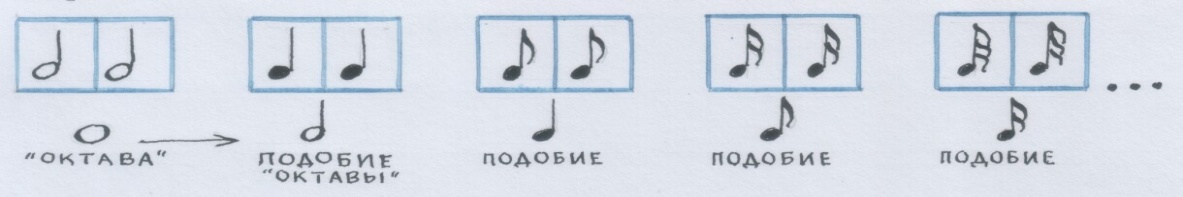 Если представить, что и длительности нот подражают принципу октавы, то деление звука-длительности на два будет подобно делению октавы на кварты: