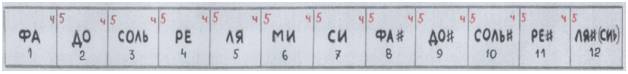 Посмотри на ленту из квинт с привычными названиями нот ( не умею писать иероглифы, а ты не умеешь их читать):