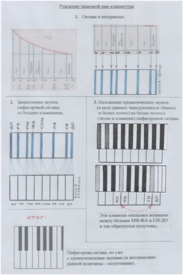 Та клавиатура, которую мы знаем, и демонстрирует нам этот процесс вживления полутонов-хроматизмов в октаву Пифагора.