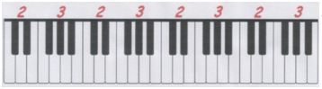 Пифагорову октаву взялись представлять собой белые клавиши, среди которых сохранились два естественных полутона: МИ-ФА, СИ-ДО.