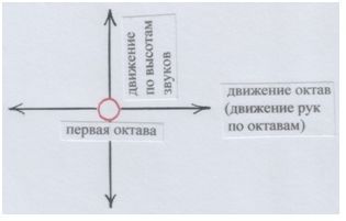 А «точкой отсчёта» является октава, которая соответствует среднему человеческому голосу (петь в первой октаве умеют все!). И, кроме того, она всегда располагается прямо напротив нас: МЫ – ОКТАВА, зеркально.
