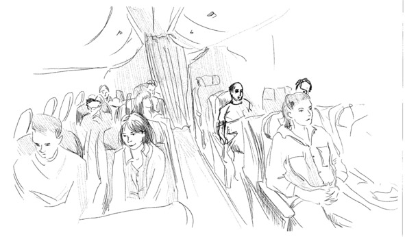 В нашем ряду сразу через проход молодая женщина наставляла свое шестилетнее чадо, как правильно вести себя во время обеда на высоте 10 000 метров. Допив кофе, Пастырь с интересом наблюдал за её ультимативными наставлениями.