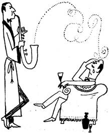 Через несколько минут мы уже сидели за столиком в маленьком темном кабачке. Прочитав вывеску, на которой было написано «Ristorante Italiano», я пришел к выводу, что ресторан был итальянский. Я поразился, обнаружив, что мой друг был здесь, по-видимому, своим человеком. Его приказание принести три стакана кьянти с двумя спагетти в каждом вызвало подобострастный и восхищенный поклон старого padrone[1].' Я убежден, что этот удивительный человек так же хорошо разбирается в сортах тонких итальянских вин, как и в игре на саксофоне».